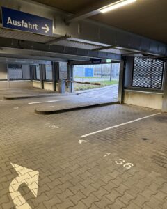 Sicherer und moderner Außenparkplatz oder Parkhaus am Flughafen Frankfurt